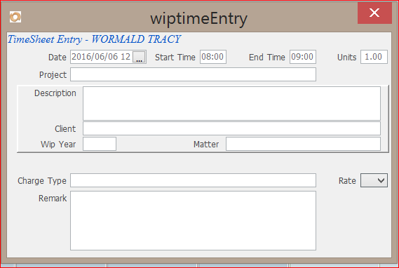 10. The rate will automatically default to ‘A’ for chargeable time and ‘O’ for non-chargeable time, when you tab off.