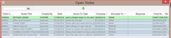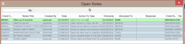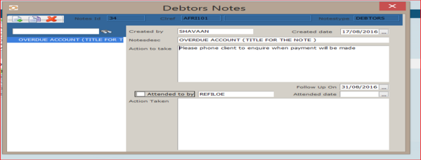 Eg. The note can be created by a partner/manager/supervisor etc and then allocated to a debtors clerk/ credit controller to action