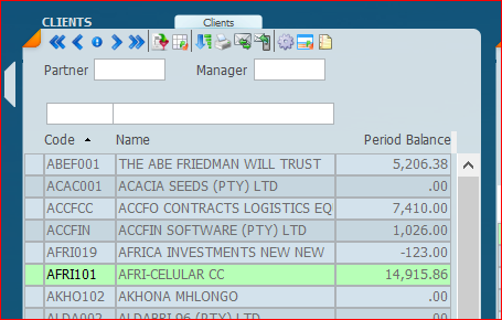 2. On the client list screen , highlight the client that you wish to log a note for, the client record will be highlighted in green as below
