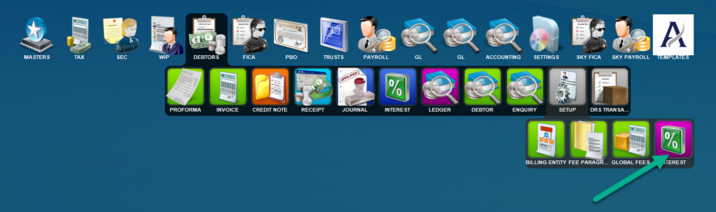 Select interest rates from Debtors Setup Interest and insert the rates. Also see
